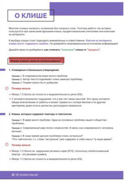 ОШИБКА: используя большинство клише из подборок в интернете, вы рискуете потерять баллы на сочинении ЕГЭ. Эксперты ЕГЭ опираются на критерии при проверке. Не все клише под эти критерии подходят.